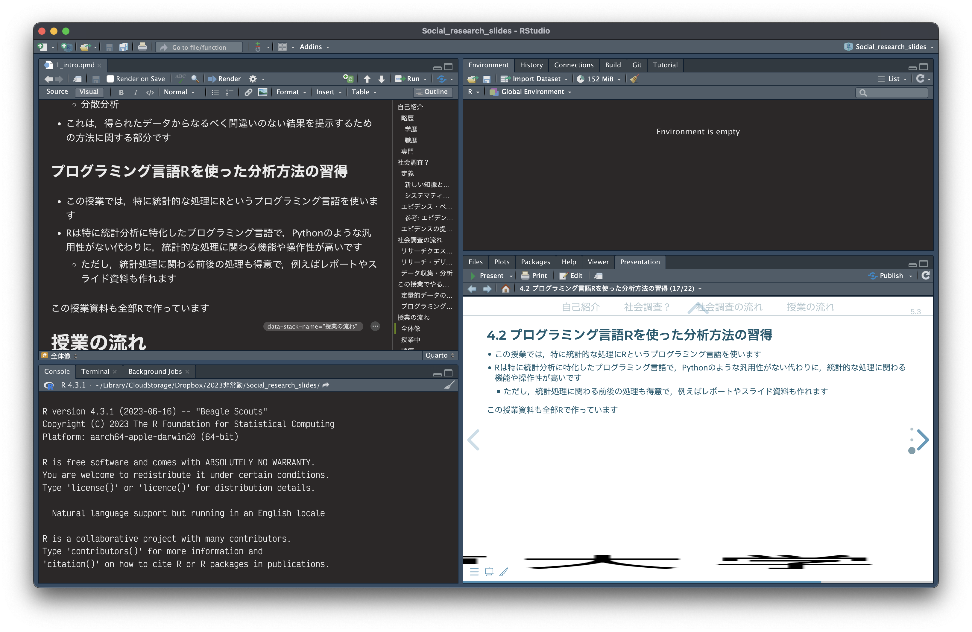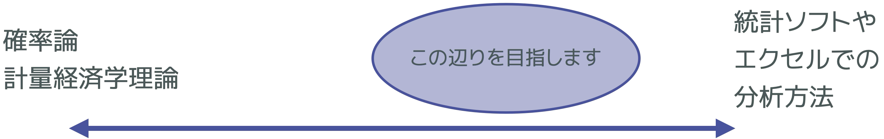 この講義では、分析上の大きな間違い(プラスの関係があるものをマイナスと推定したり、関係ある(ない)ものを関係ない(ある)と推定したり)が起こらない程度の知識を得つつ、実際に分析作業ができるようになることを目指します。