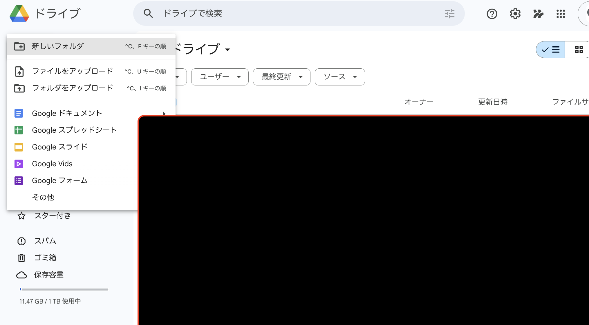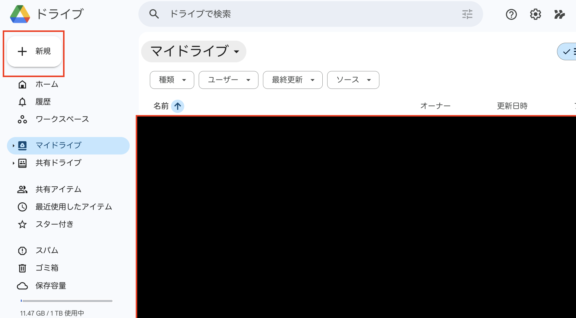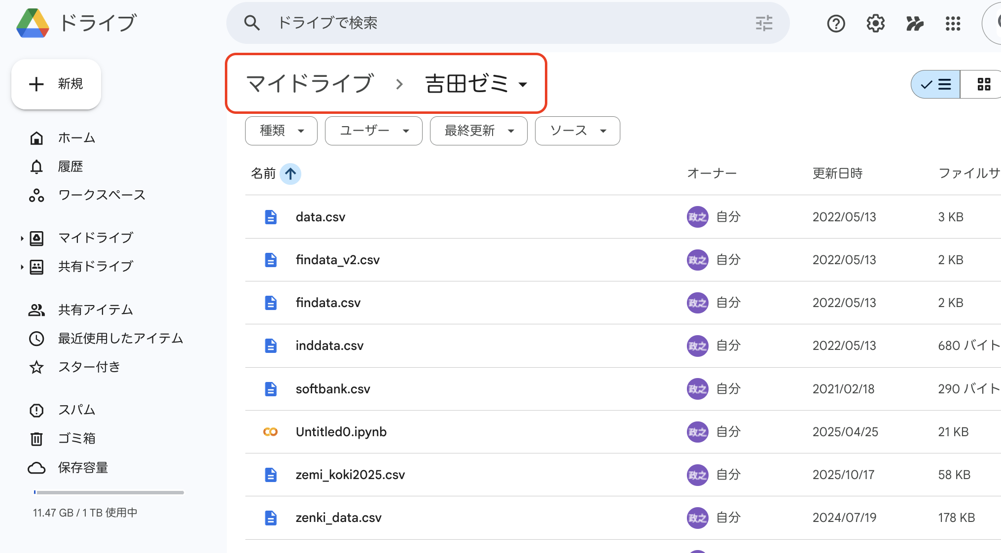 なので、まずはこのゼミのためのフォルダをgoogle drive上に作成します。