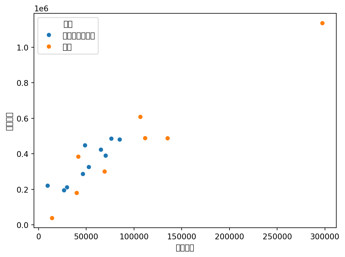 全体と業界別で係数や決定係数がどう変わるか比較してみよう。
