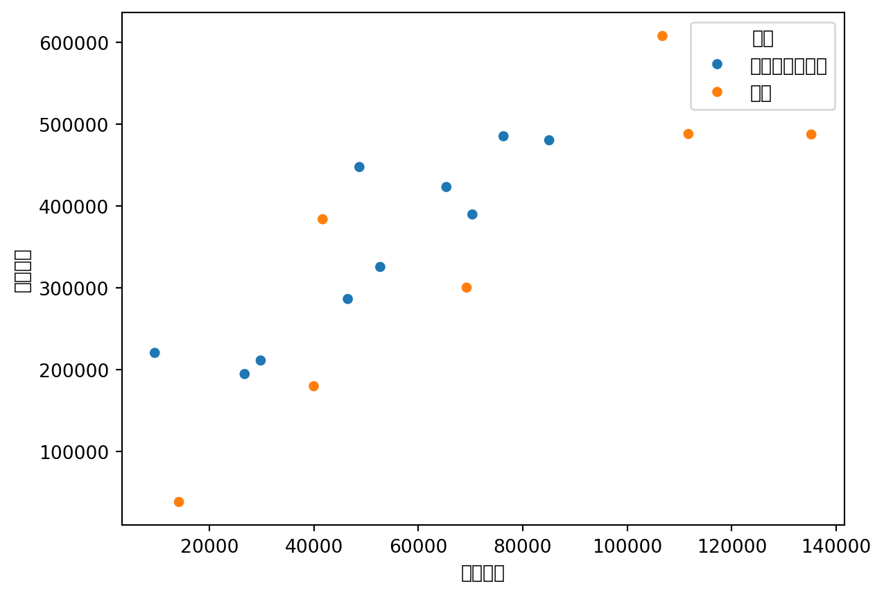 回帰分析を実行する前に、まず散布図で変数間の関係を目で確認する。外れ値の有無や非線形な関係がないかをチェックするためのステップ。
